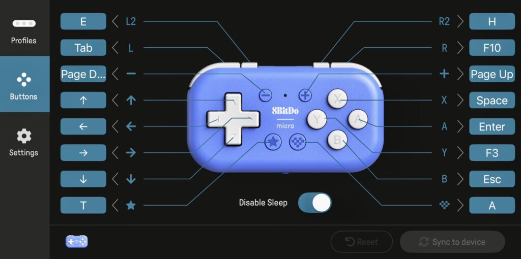 各端末との接続はBlutoothで、ボタンの設定もスマホに8BitDoのアプリを入れて行います。