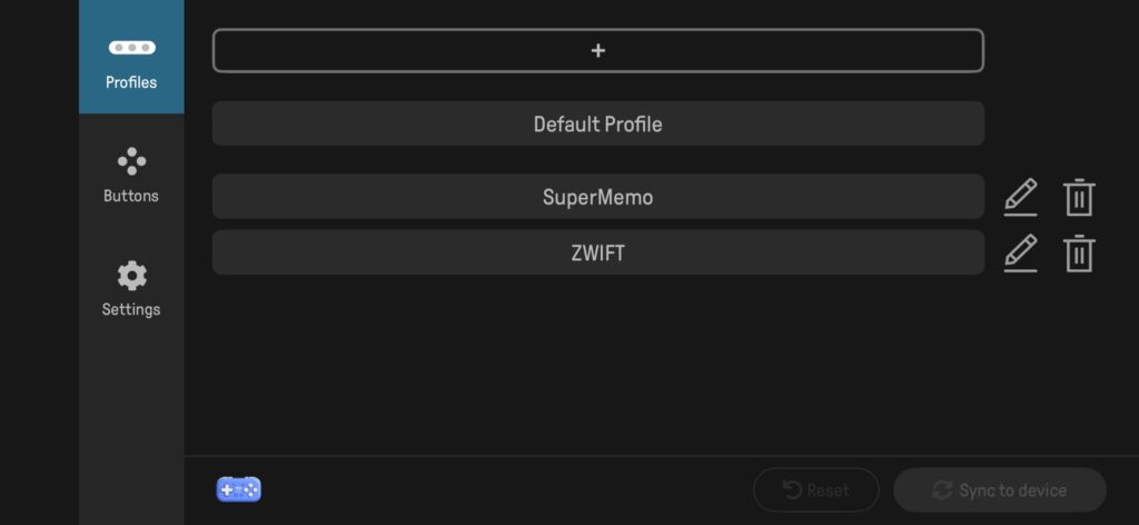 ボタン設定はProfileでSwich用、iPad 用、ZWIFTレース用、ZWIFTワークアウト用など名前を付けてアプリに複数保存できます。(私はメンドクサイので1つだけ)