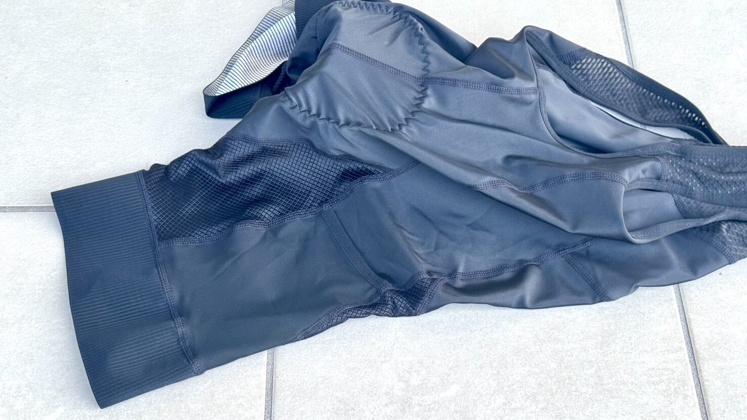 このレッググリッパー、見た目は前回紹介したDAREVIEエコフォスティスビブショーツと同じですが、こちらの方は厚めで伸縮性も少めです。