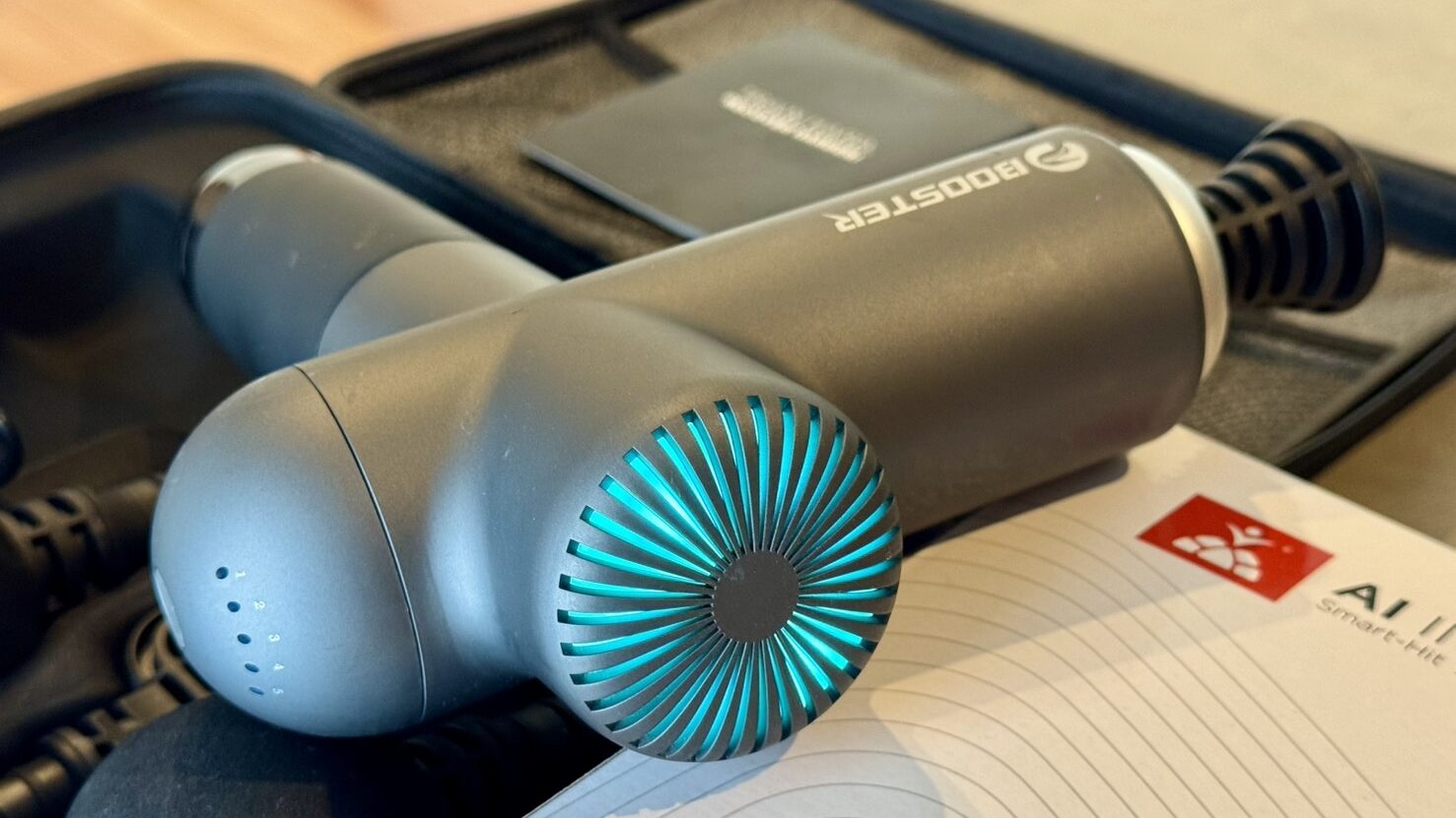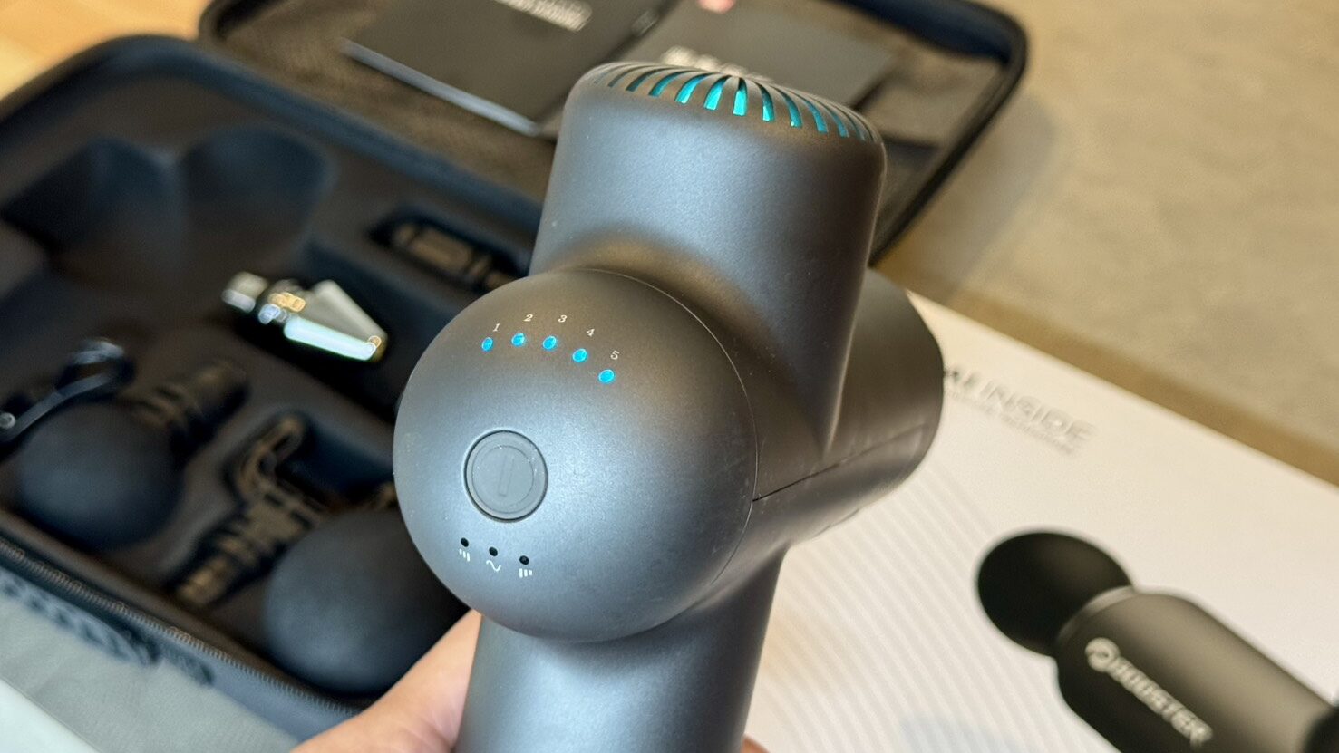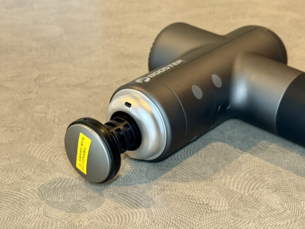 類似商品・同価格帯のマッサージガンのバッテリー容量はおおむね2600mAh程度ですが、これは4000mAhのバッテリー搭載です。