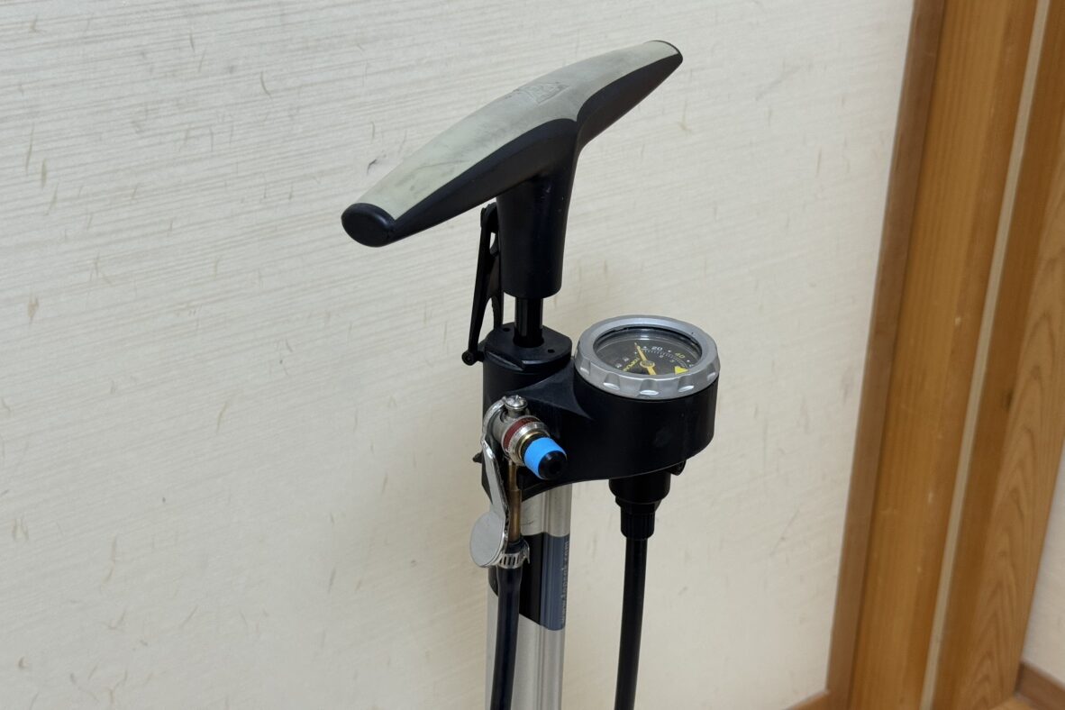 JoeBlow Sprintは空気圧計表示板が上にあって見やすく、押し手も上部がラバーで滑りにくいのでおすすめです。