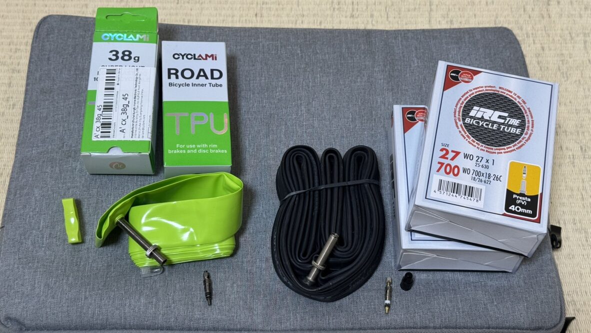 今回ホイール3セット分(計6本)交換しますが、そのうち2セットはバルブコアの取り外しが不可のチューブを使用していたためチューブを新調しました。