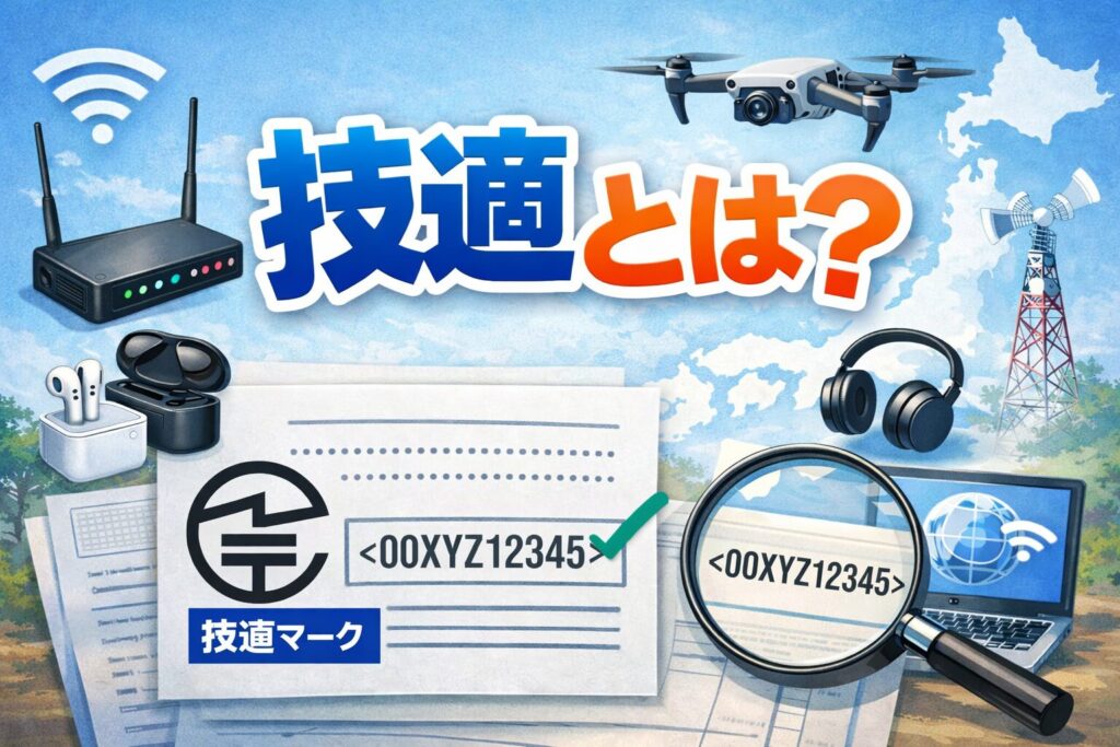 「技適(ぎてき)」とは「技術基準適合証明」または「技術基準適合認定」の略で、日本国内で無線通信を行う機器(スマホ、Wi-Fiルーター、Bluetoothイヤホンなど)が電波法などの技術基準に適合していることを証明する認証制度です。