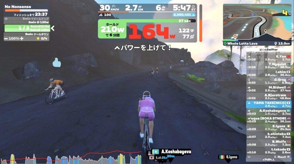 ZWIFT側でもスマートトレーナー負荷を調整できるので、負荷はZWIFT側×CYCPLUSアプリ側の掛け算になります。