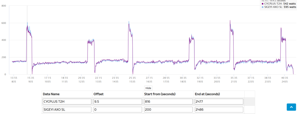 前回と同じT2H+ZWIFTとSIGEYI AXO SL+Edge840solarでの計測です。