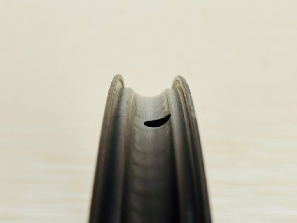 一番薄いであろうリム側面ですが、強く押すと少したわむ感じはしますがペコペコする感じはありませんでした。