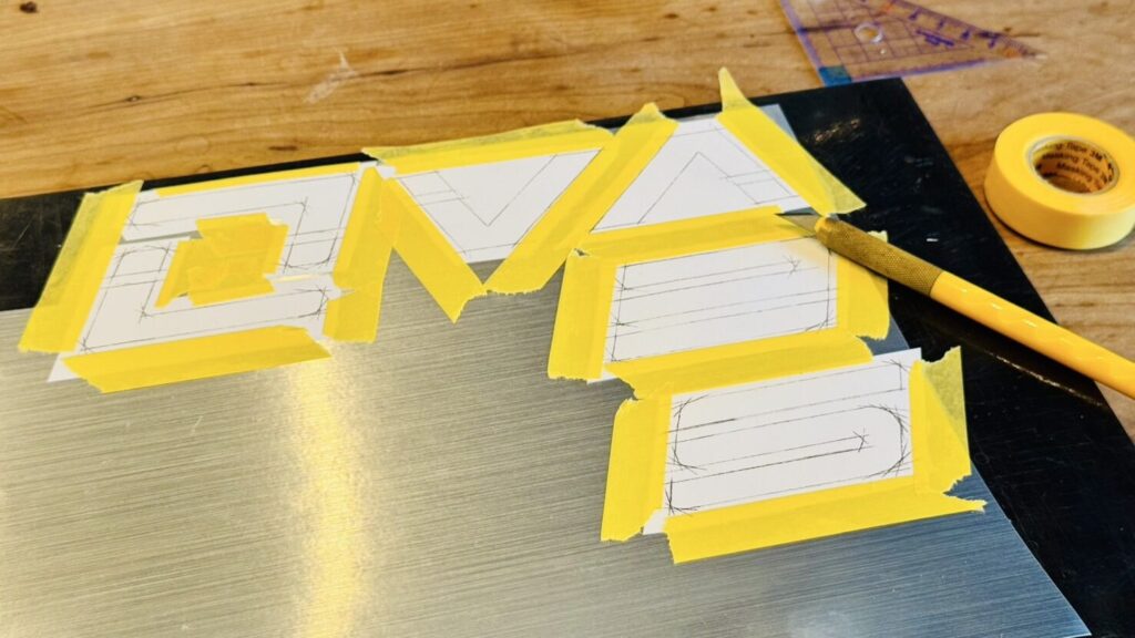 後ろ面が透けて見えるトレーシングペーパーを使ってロゴをなぞってトレースします。