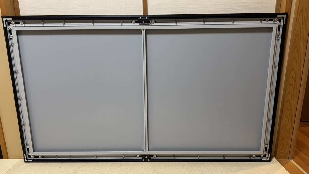 ロールタイプやシートタイプだと設置は楽ですが、平面性の問題や扇風機の風でなびいてしまうことなどから今回パネル式を選びました。