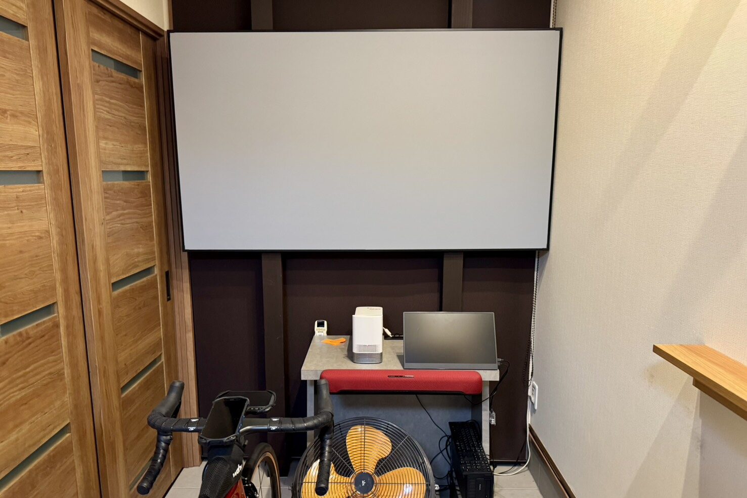 こんな環境でバーチャルサイクリングゲームの画面を投影します。