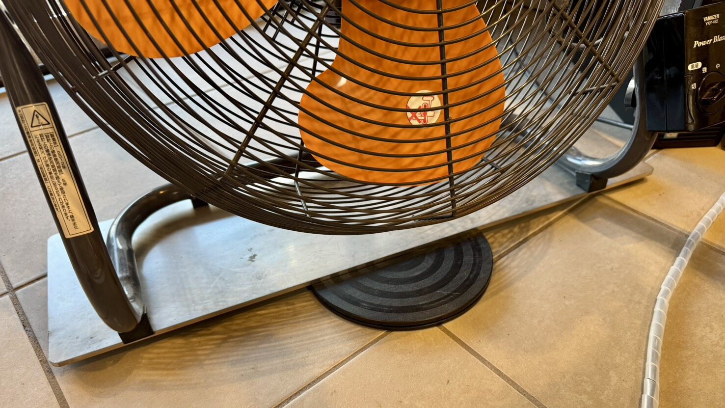 工業扇風機の下に回転盤を設置。