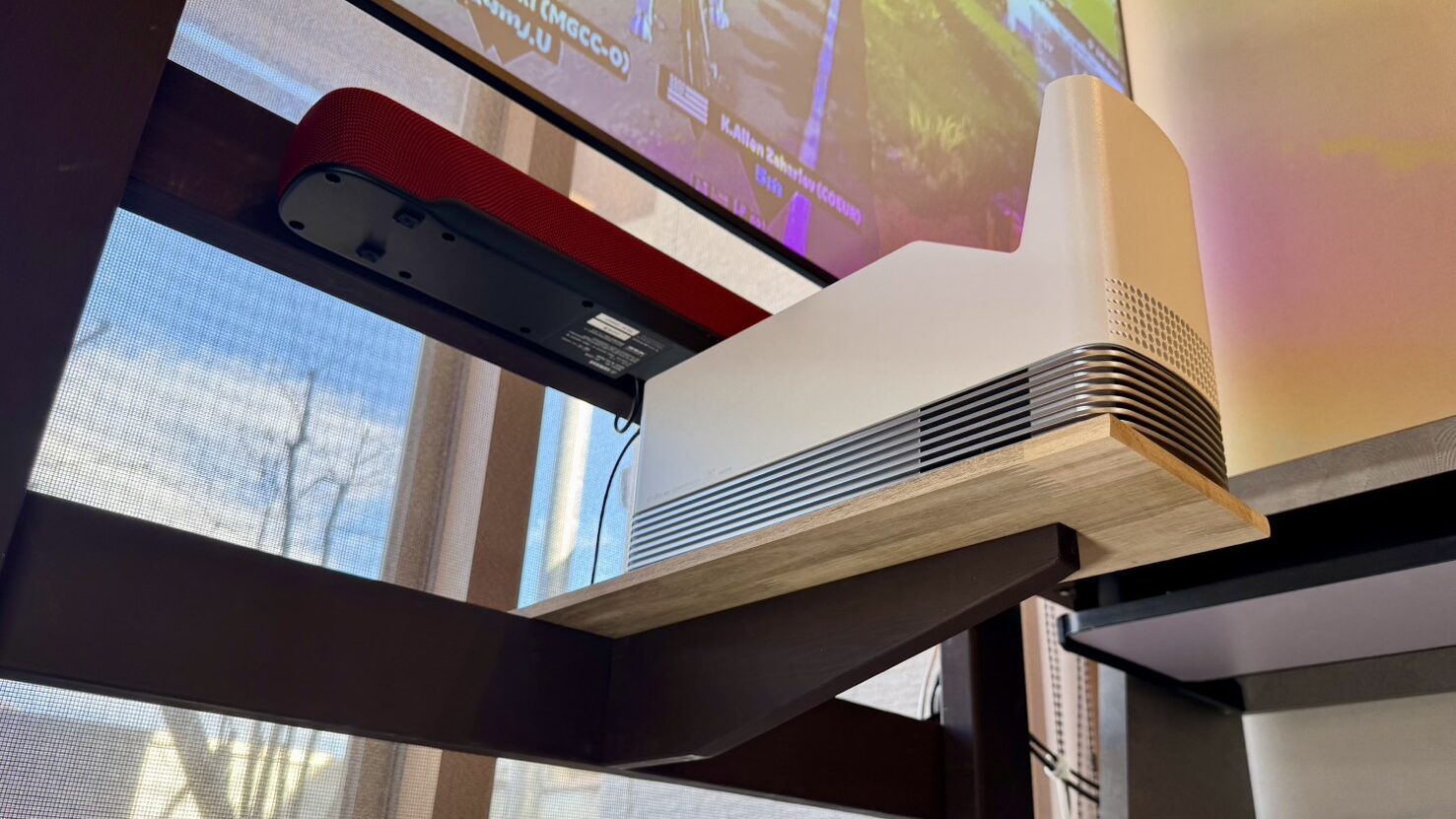 サウンドバーは壁掛け方式に変更、これも2×4木材で。