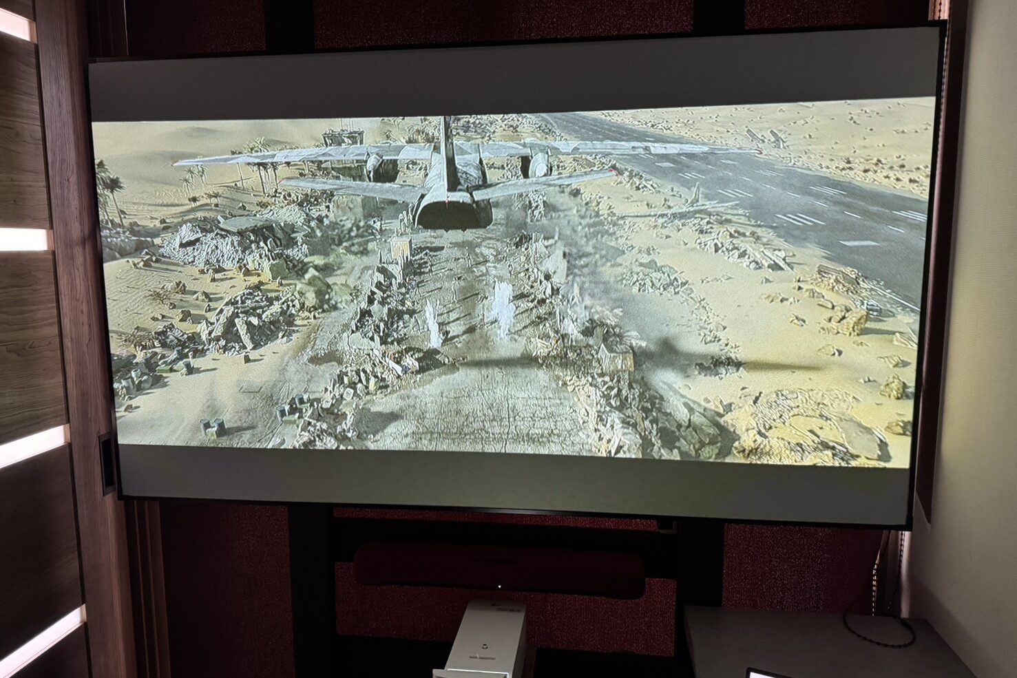 ちなみにこのサウンドバーは壁掛け用の音響モードが用意されていて、前方向で聞く壁掛けに最適な音響に変更可能です。