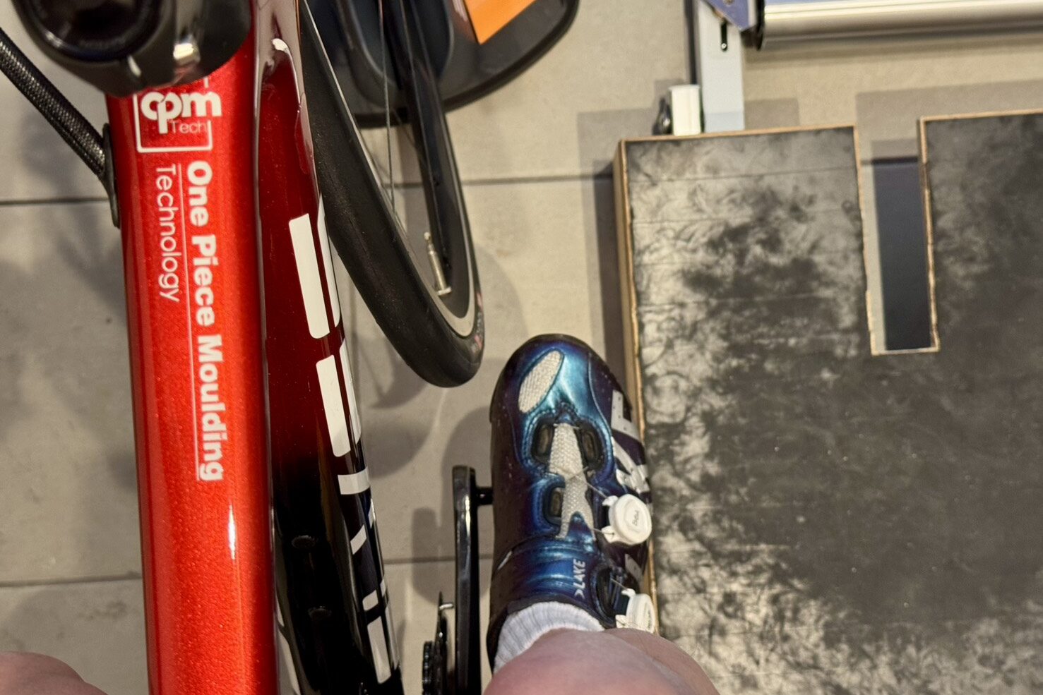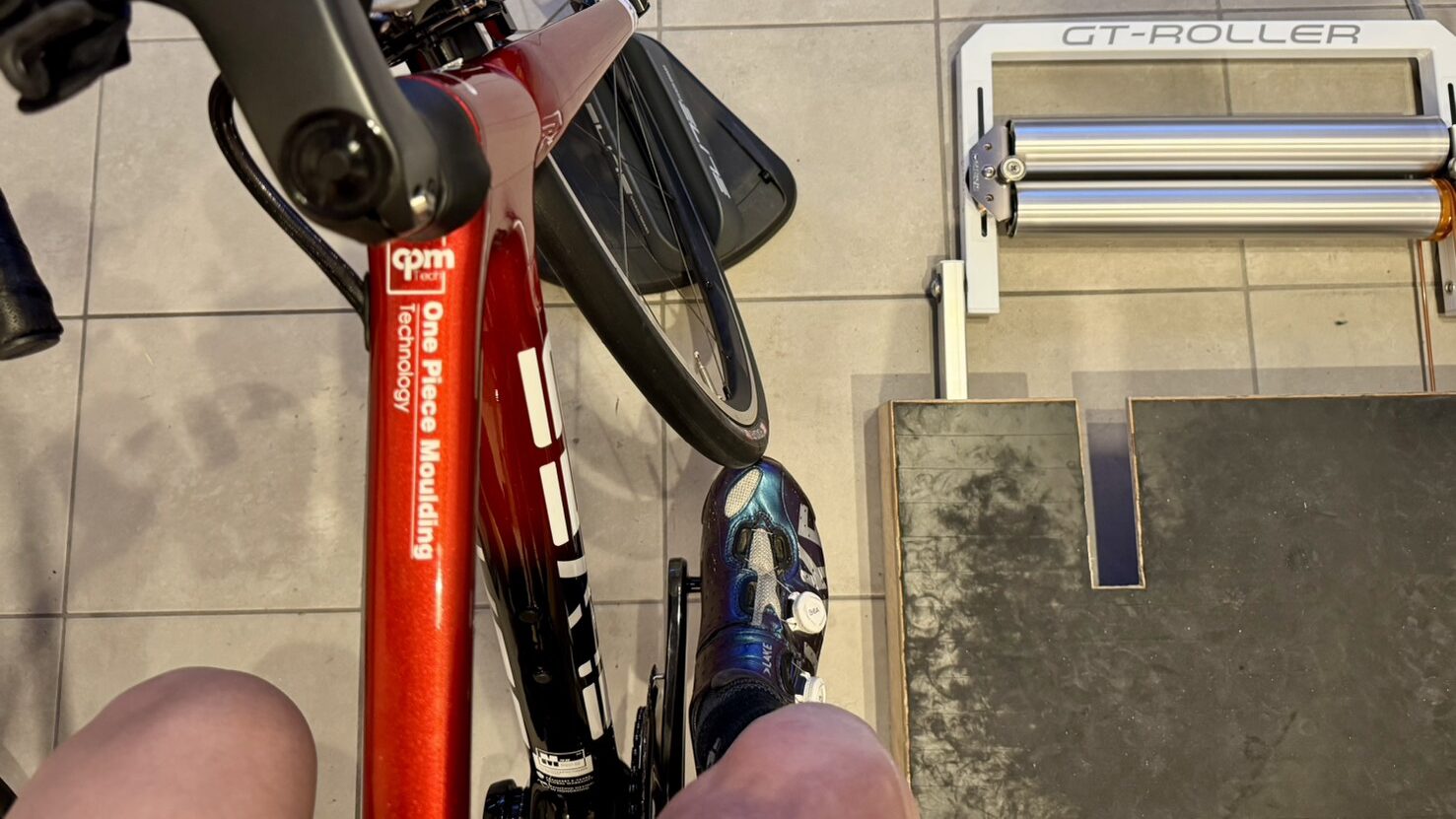 フレームのジオメトリやクランク長にもよるのですが、タイヤにシューズのつま先が当たります。