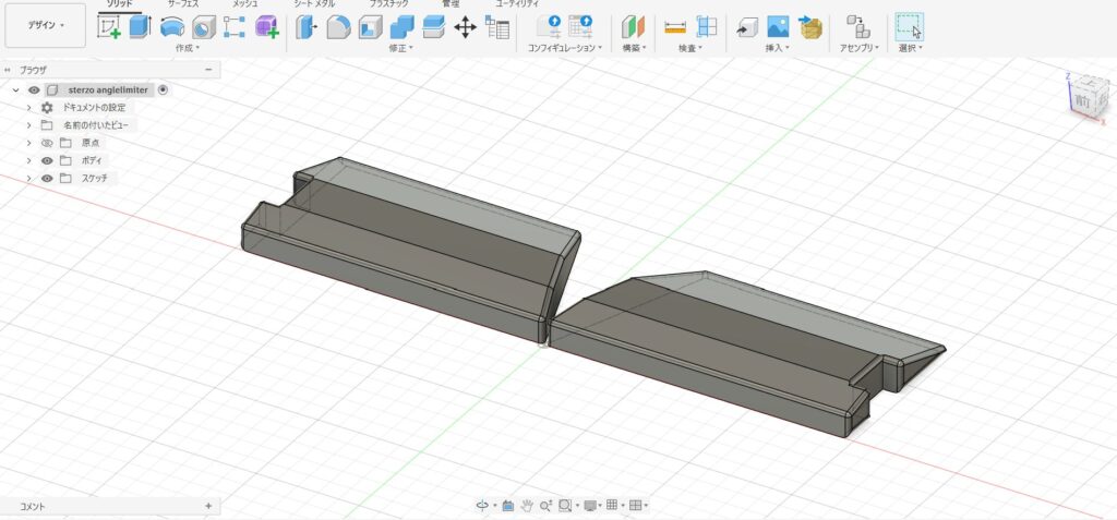 Fusion360で物理的にハンドルの切れる角度を制限する3モデルを設計します。