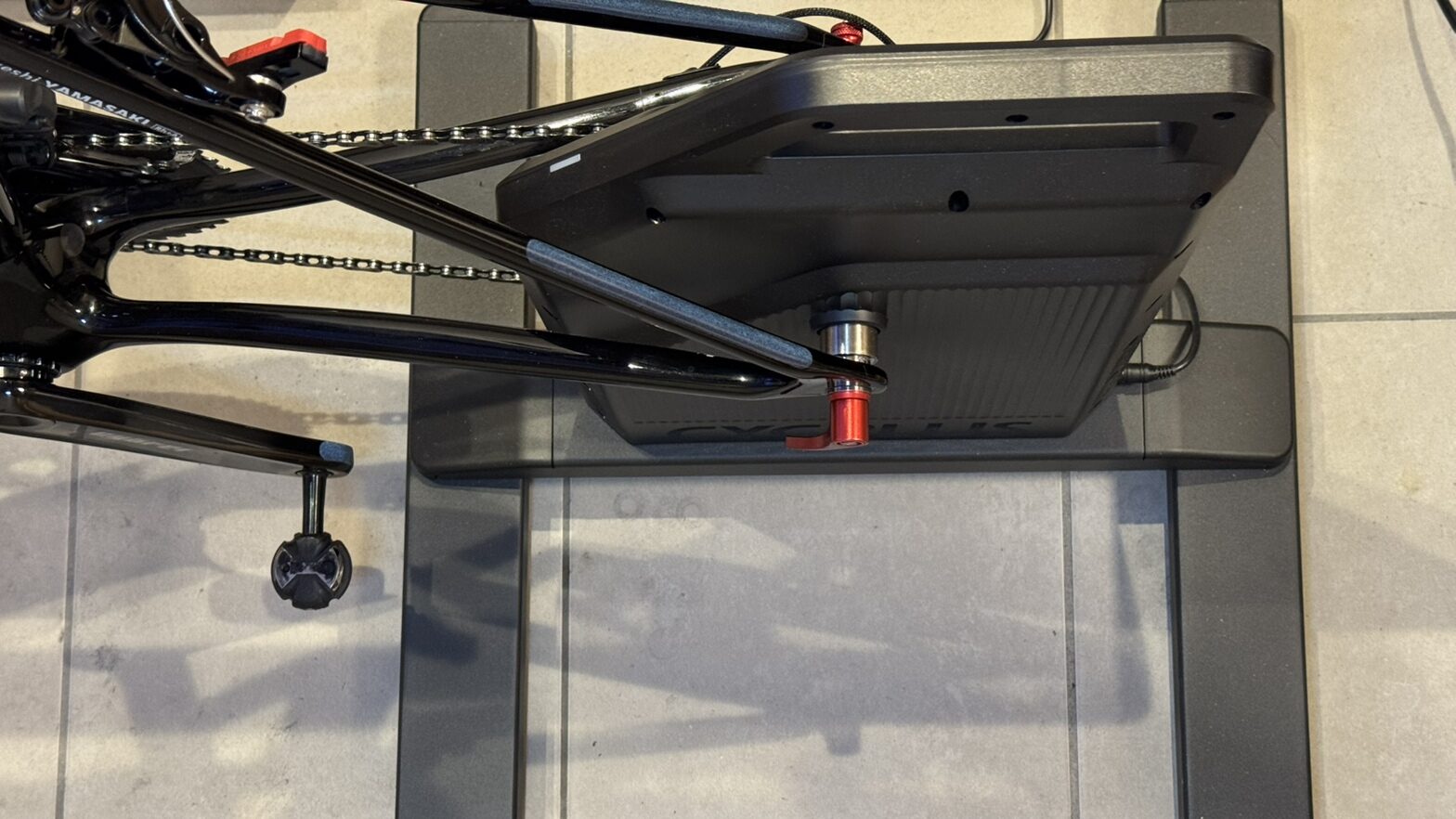 この床の高さ設定が絶妙で、サドルにまたがったまま両足が着けるけど、クランクがヒットしない高さになっています。