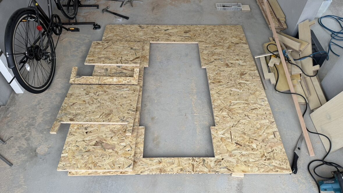 OSB合板・コンパネをカットします。(ガレージ広くて良かったな!)