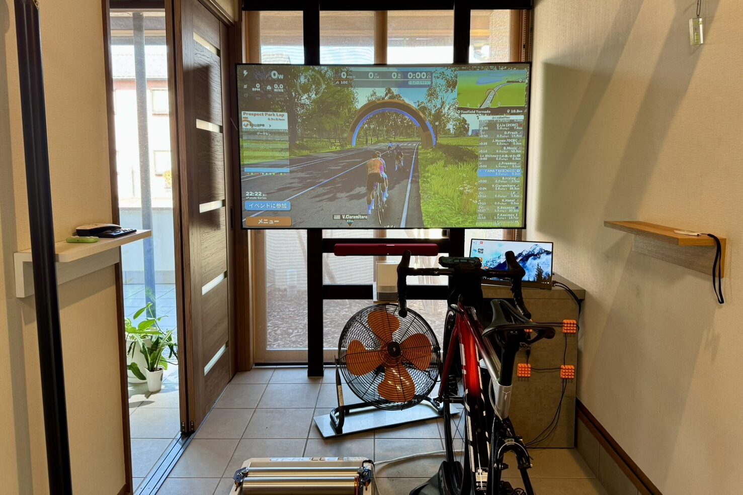 がしかし、センターでZwiftすると没入感がケタ違いです。
