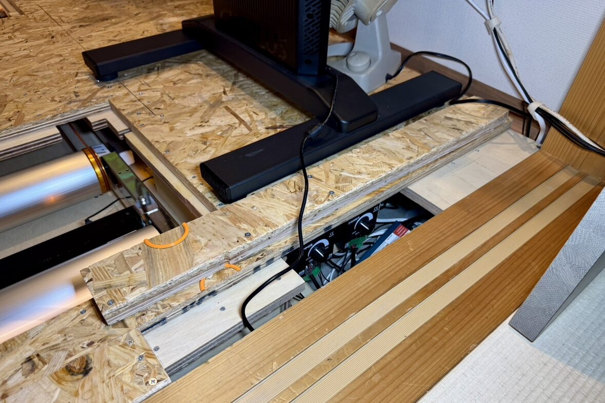 スマートコンセント、変圧器、配線関係は床下に収納しました。(蓋は開閉可)